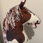 Kopf etwa 40 bis 44 cm hoch, von der Mähne bis zum Maul ca. 33 cm, Kopfbreite 15 bis 17 cm