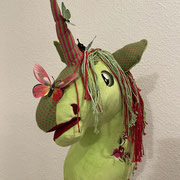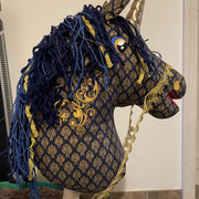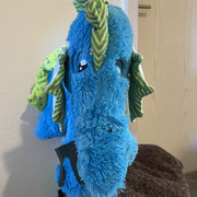 Das Horn ist ca. 20 cm lang. Der Besenstiel hat eine ungefähre Länge von 70 cm. Das gesamte Seepferdchen ist 83 cm lang. Der Versand kann in einem L-Paket erfolgen.