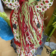 Die Tierchen haben zum Reiten einen Holzstiel. Verletzungsgefahr bei Stürzen mit und über diesen Besenstiel.